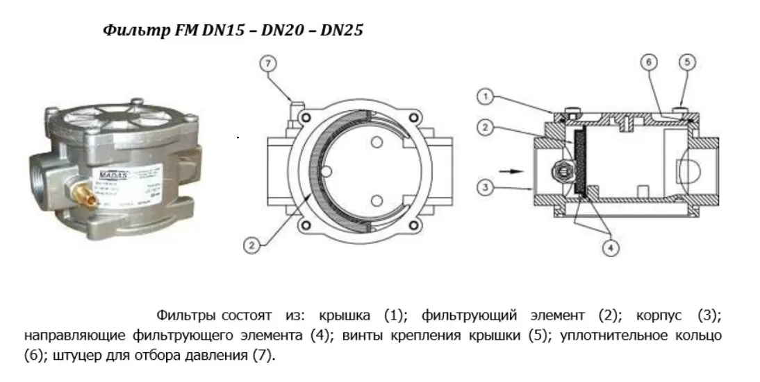 Фильтры FM служат для очистки рабочей среды, как природный газ, воздух, азот, от пыли, окалин и осадков. Фильтры оснащены фильтрующим картриджем, который выполнен из синтетического волокна. Фильтрующий элемент можно извлечь и почистить. Для удобства на фильтры серии FM от Ду 65 возможно установить индикатор перепада давления, который указывает степень загрязнения фильтрующего элемента. Когда стрелка переходит в красную зону, необходимо произвести техническое обслуживание и чистку фильтра. Степень фильтрации можно выбрать для каждого типа фильтра: 5, 10, 20, 50 микрон. Так же для некоторых моделей возможно вместо синтетического волокна заказать стальную сетку. Так же доступно для заказа исполнение с дополнительной сеткой, отстойником и краником для слива конденсата и мелкой грязи без демонтажа фильтра.