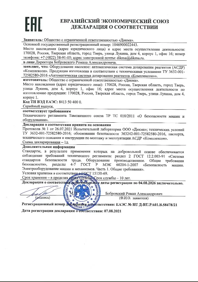 • максимальное давление воды в трубопроводе подпитки для стандартного исполнения АСДР “Комплексон® ” – 0,8 МПа (8 кгс/см2 ) и 1,2 МПа (12 кгс/см2 ) – по заказу.