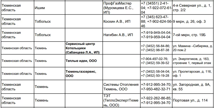 Список сервисных центров и сервисных партнеров BAXI  (газовое оборудование)