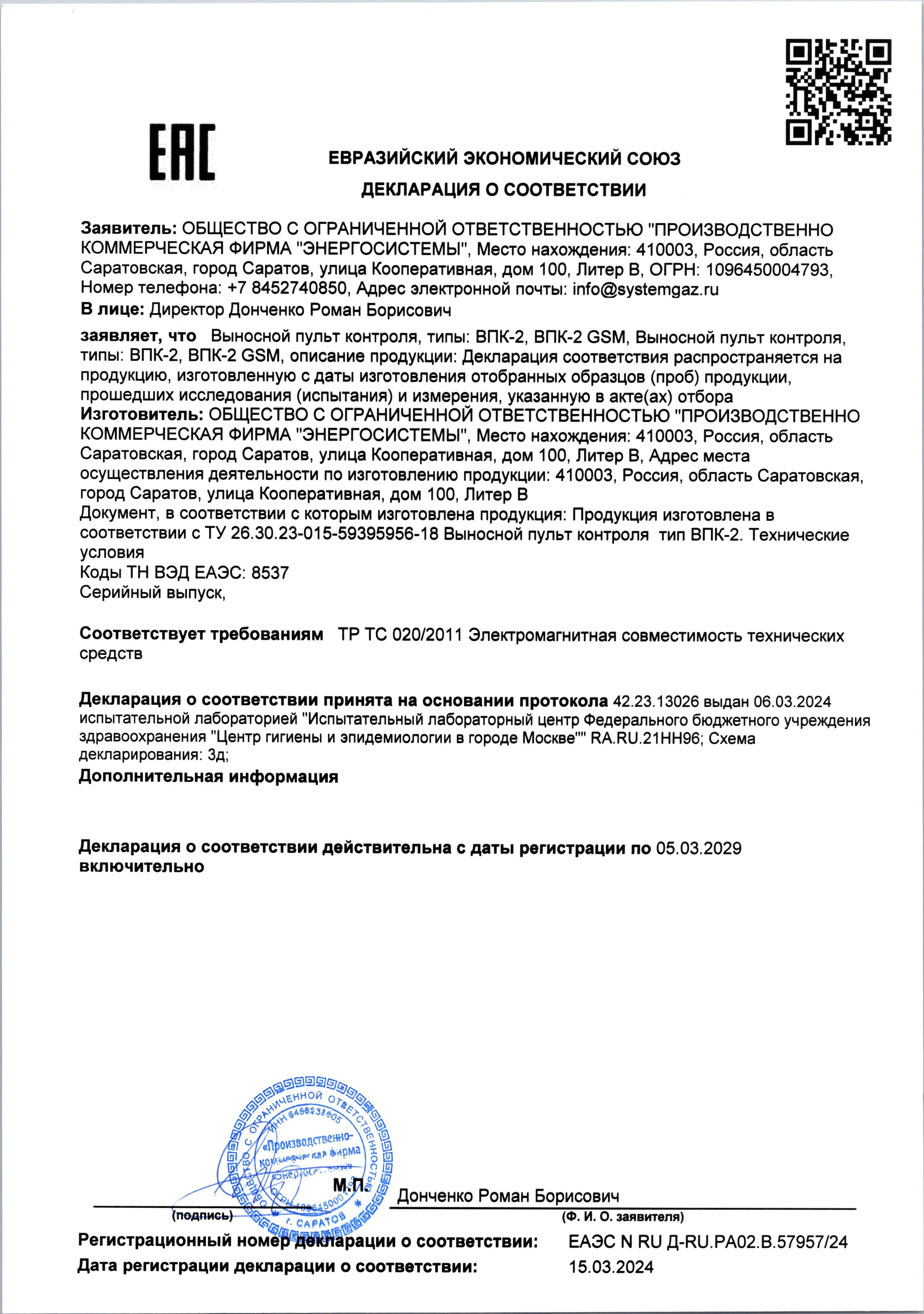 Выносной пульт контроля ВПК-2 дублирует аварии котельной. В случае возникновения аварийной ситуации выносной пульт контроля включает звуковое оповещение. ЖК-дисплей позволяет осуществлять полноценный контроль состояния котельной. Все аварии приходящие на диспетчерский блок дублируются в том же виде на выносной пульт контроля ВПК-2.