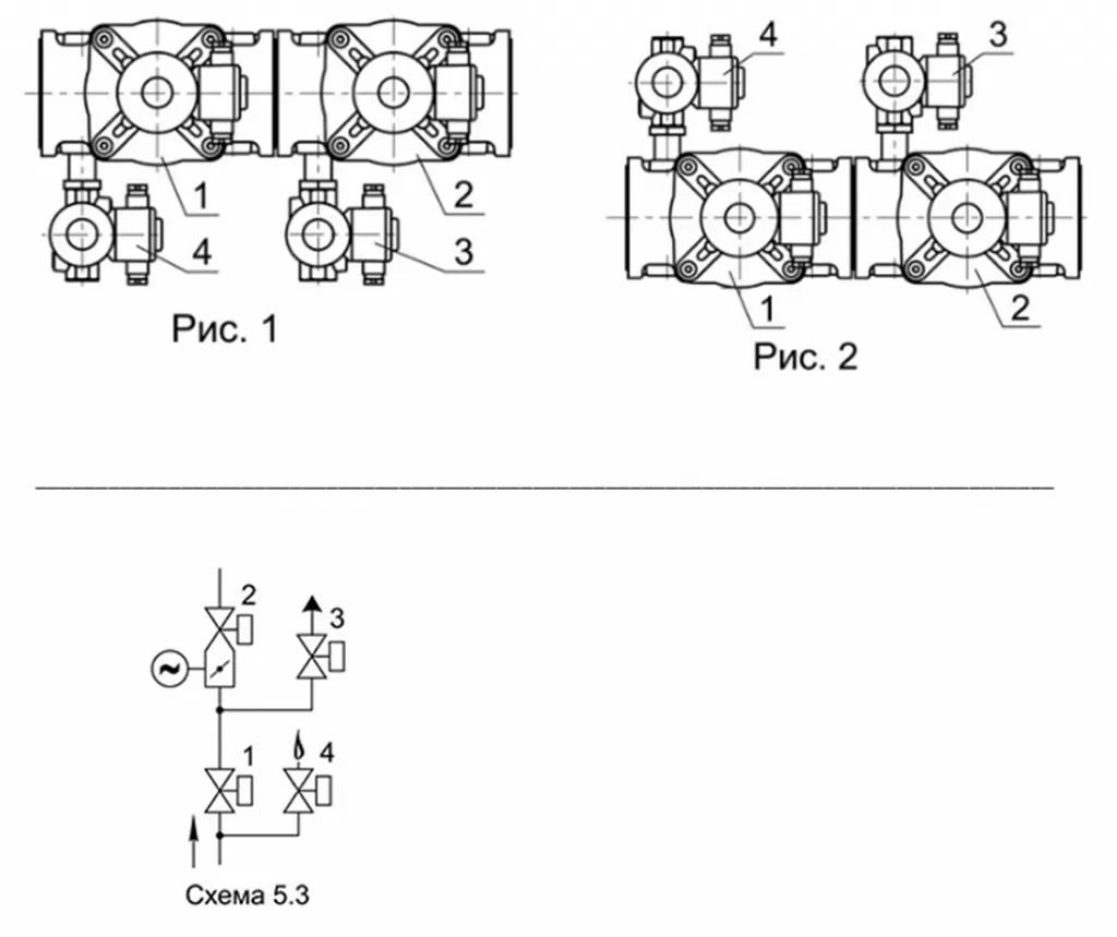 Клапаны свечи безопасности и запальной горелки могут располагаться справа по ходу газа (рис. 1) или слева (рис. 2).