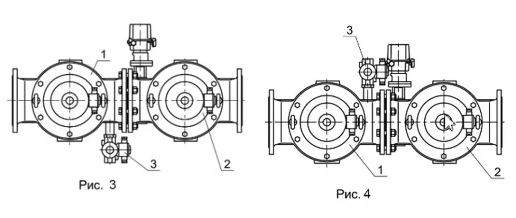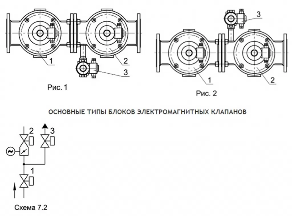 Клапан свечи безопасности может располагаться справа по ходу газа (рис. 1) или слева (рис. 2).
