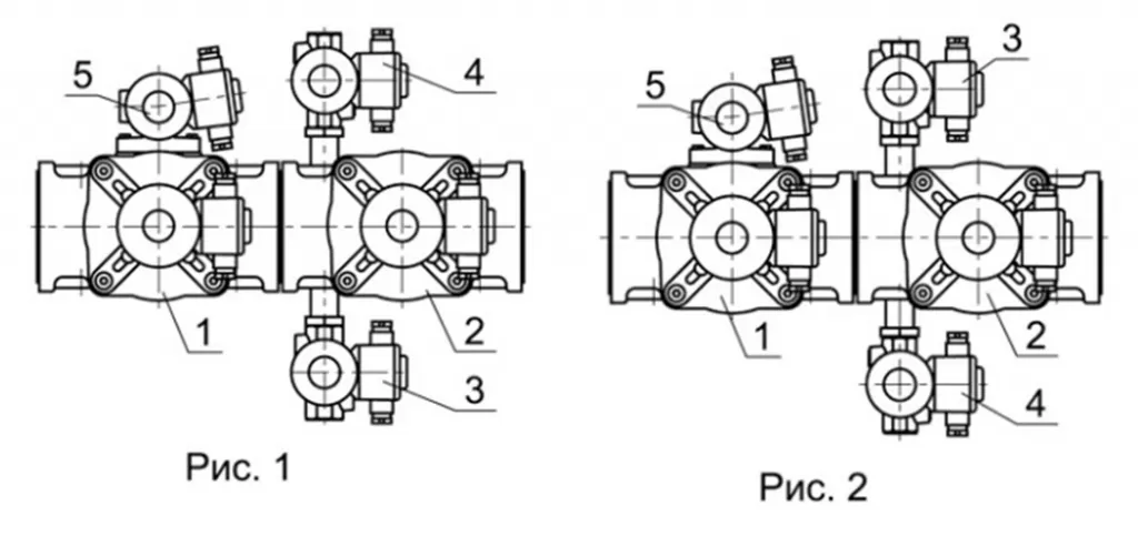 Клапан свечи безопасности может располагаться справа по ходу газа (рис. 1) или слева (рис. 2).
