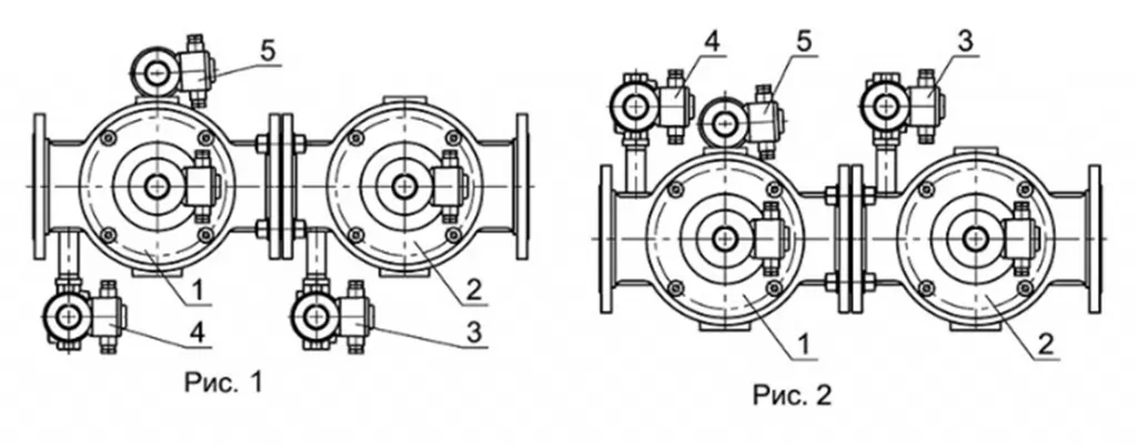Клапаны свечи безопасности и запальной горелки могут располагаться справа по ходу газа (рис. 1) или слева (рис. 2).