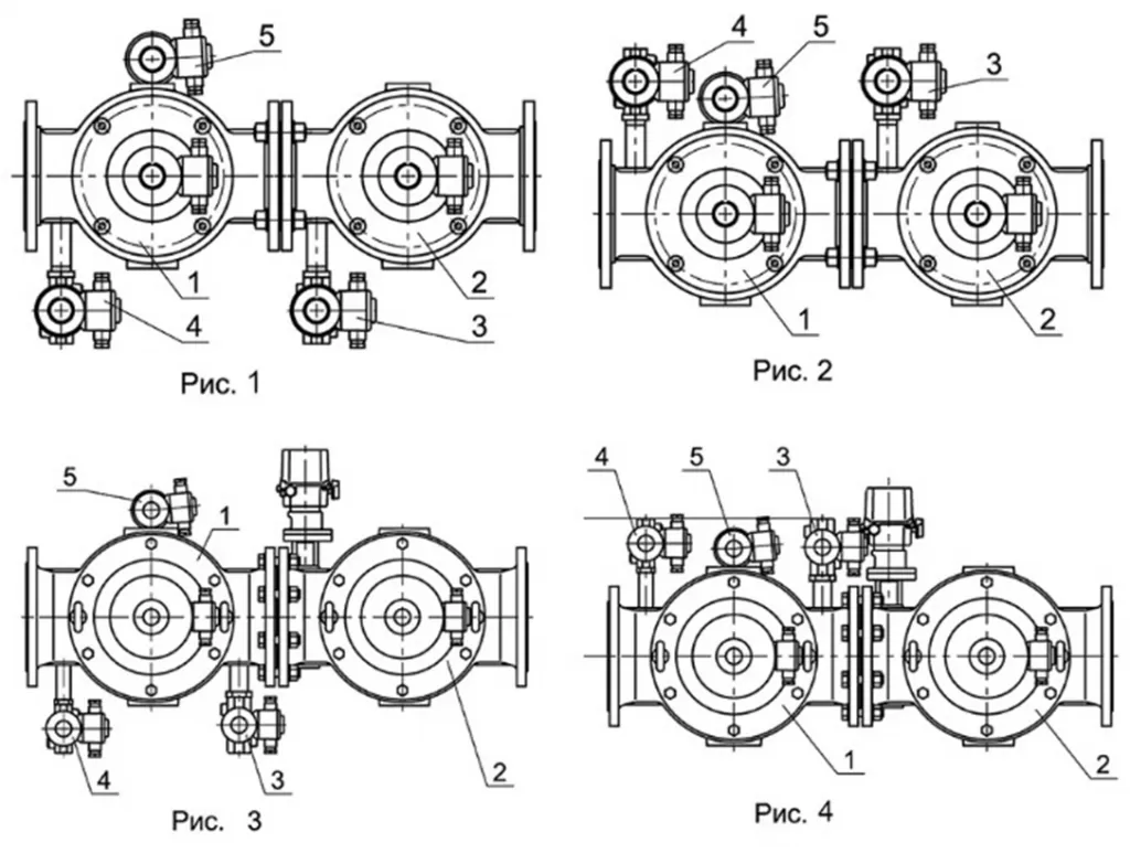 Клапаны свечи безопасности и запальной горелки могут располагаться справа по ходу газа (рис. 1, 3) или слева (рис. 2, 4).